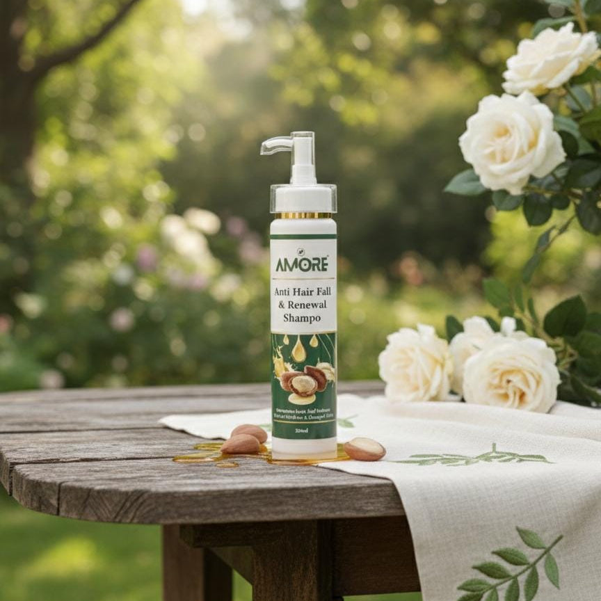 Stop hair fall before it starts with AMORE Argan Oil Anti-Hair Fall & Renewal Shampoo